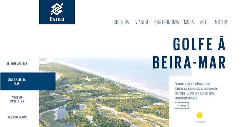 O Banco do Brasil lança esta semana a revista digital Estilo, voltada para um público que busca experiências diferenciadas e exclusivas. Com foco em assuntos do segmento lifestyle, a linha editorial foi criada a partir de pesquisas da equipe de Marketing e Comunicação do BB com diversos especialistas do mercado de alta renda. Cultura, viagem, gastronomia, moda, arte e motor são alguns dos temas abordados na página http://revistaestilobb.com.br/. A revista foi desenvolvida e coordenada pela AgênciaClick Isobar e será atualizada mensalmente.