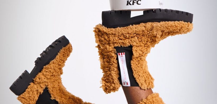 O KFC promove uma ativação que conecta moda e branding ao transformar seu principal atributo, o “empanamento crocante”, em linguagem estética aplicada a peças de vestuário e acessórios.