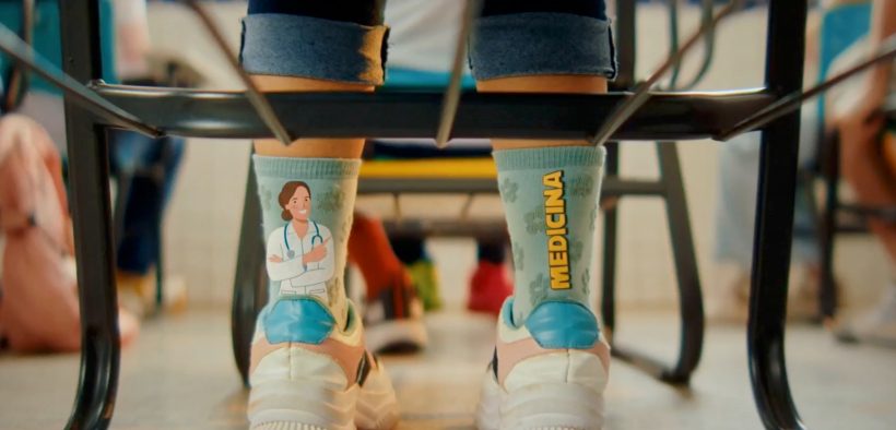 No eixo de conteúdo, a estratégia aposta em um modelo multiformato, com peças que operam em diferentes registros narrativos. O filme “Visão Pé-de-Meia” lidera a campanha com uma construção visual baseada em estampas de meias, utilizando metáfora e humor para apresentar o programa de forma mais acessível. Já “Como cheguei até aqui” explora o território do storytelling aspiracional, ancorado na jornada de um estudante, enquanto “Papo furado” incorpora um formato de entretenimento leve com teatro de fantoches para atuar no combate à desinformação e ampliar a clareza sobre o funcionamento da iniciativa.