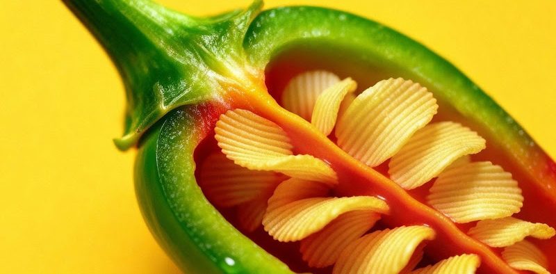 A partir da ideia, a marca levou o pensamento do digital para o físico: um artesão foi convidado a produzir grandes pimentas de argila, enquanto batatas chips foram recriadas em impressora 3D para simular as sementes. O resultado são imagens surreais, que parecem criadas por inteligência artificial, mas foram produzidas de forma totalmente artesanal para um ensaio assinado pelo fotógrafo Nano Cunha, com participação do artesão Hugo Miguel.
