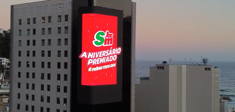 A HZ Comunicação é novamente responsável pelo planejamento e execução do megapainel 3D da Rede Supermarket, instalado na Barra da Tijuca (RJ) em comemoração ao aniversário da rede. A ação reforça o posicionamento da marca como referência em inovação no varejo carioca, ao ocupar o primeiro megapainel 3D da América Latina, em parceria com a Movie Mídia.